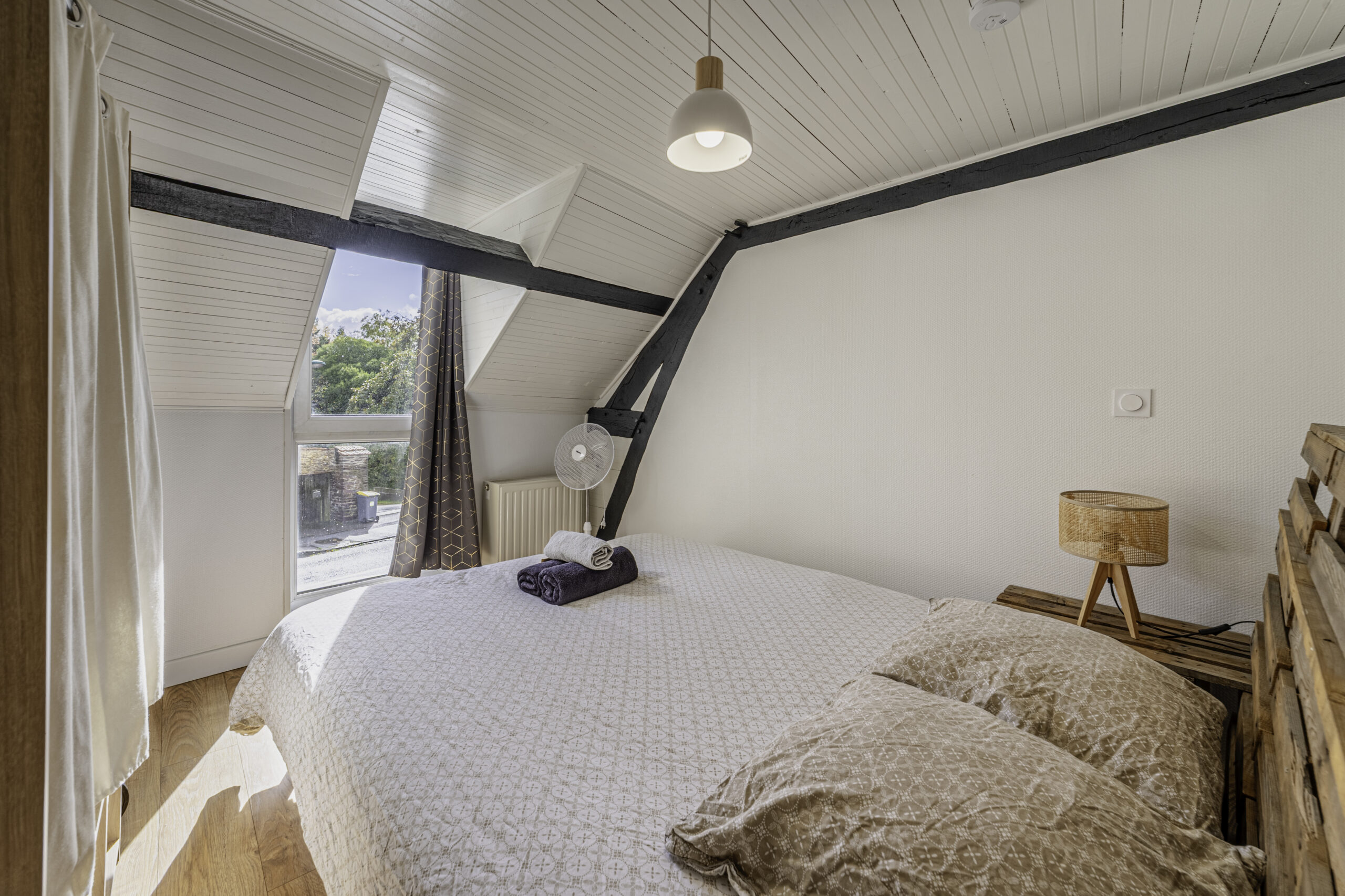 À noter : la chambre étant située sous les combles, les personnes de grande taille devront simplement faire attention près de la fenêtre. L’accès au lit reste facile.