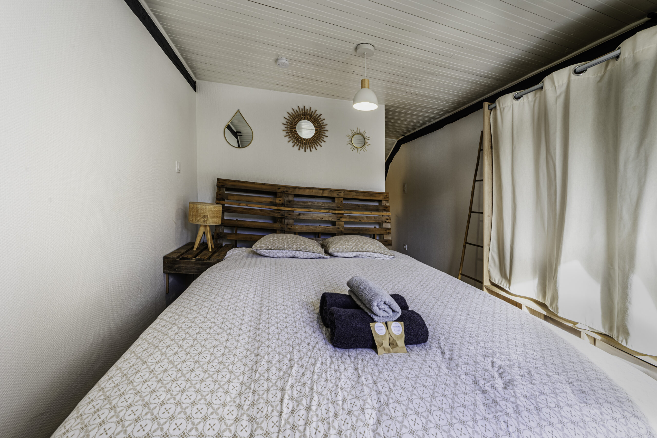 Le duplex est conçu pour accueillir 2 voyageurs confortablement. Il dispose d’une chambre avec un grand lit double.